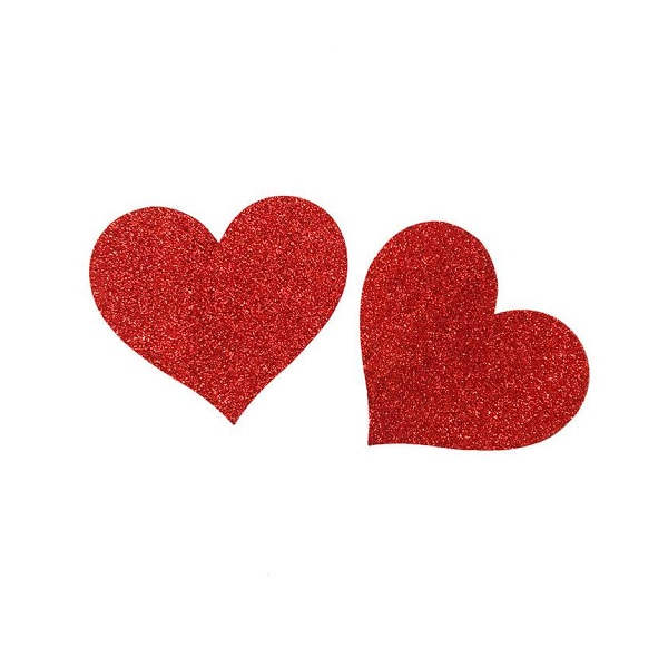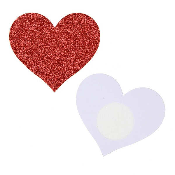 Heart shaped nipple cover stick in Glitter Red with adhesive backing. Two covers included.