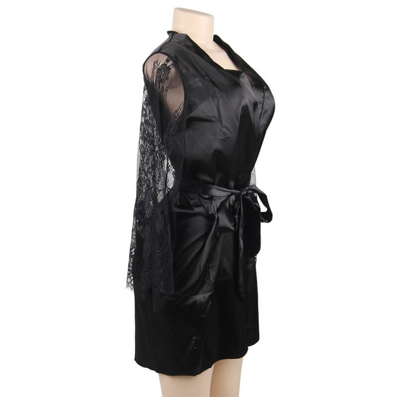 Black Satin And Lace Robe